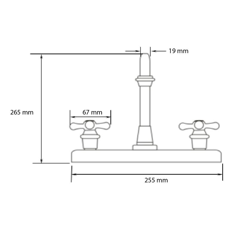 La mezcladora para fregadero DICA de 8" con manerales tipo cruceta combina elegancia y resistencia. Fabricada en latón con acabado en cromo, ofrece un funcionamiento eficiente a baja y alta presión gracias a su cartucho cerámico de 1/4 de vuelta. Su diseño garantiza un flujo de agua suave y duradero, ideal para cocinas modernas que buscan calidad y estilo. Incluye 10 años de garantía en acabado cromo y 2 años en otros acabados, asegurando confianza y larga vida útil.