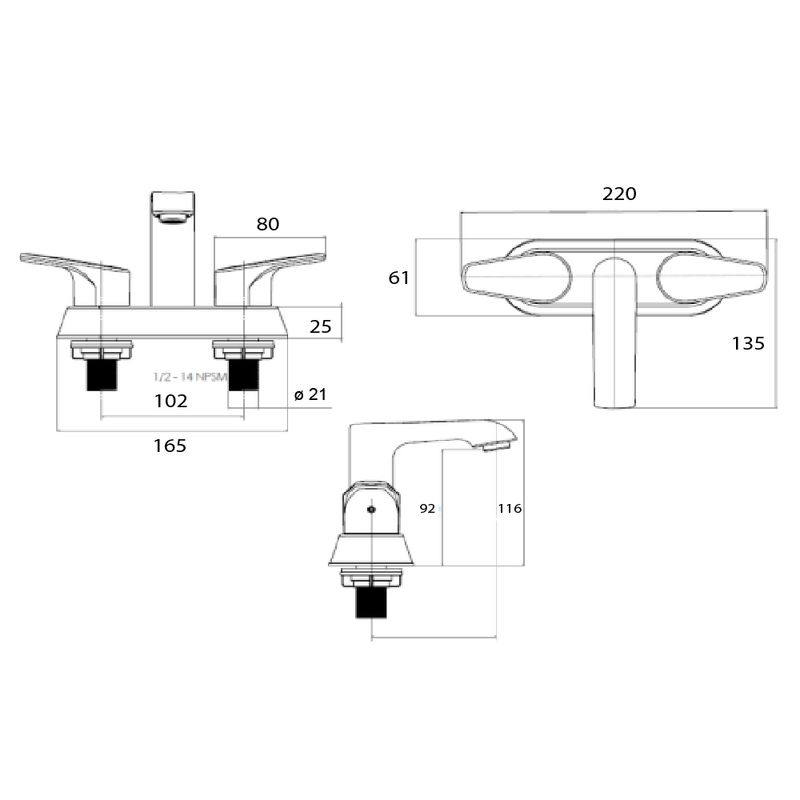 La Mezcladora para lavabo LIA Urrea 46CL de 4" combina diseño funcional y durabilidad. Fabricada en latón con altura de 116 mm, cuenta con cartucho cerámico ¼ de vuelta, presión mínima de 0.25 kg/cm² y aireador de moneda para un flujo eficiente. Su instalación es sencilla gracias a la rosca 1/2" NPT. Garantía de 10 años en acabado cromo y 2 años en otros acabados del fabricante.