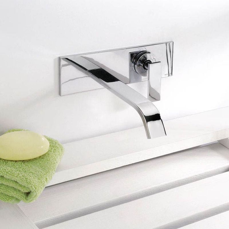 Monomando de lavabo a pared Vertika con acabado cromo, incluye contra de push e inserto para lavabos sin rebosadero. Viene con placa porta componentes, llave para aireador, llave para tuerca y llave allen de 2 mm para instalación completa. Para abrir o cerrar el flujo levante o baje la palanca; gire a la izquierda para agua caliente y a la derecha para agua fría. Presión mínima requerida 1.00 kg/cm². Garantía de hasta 10 años en acabados y 5 años en piezas de uso residencial.
