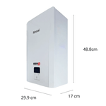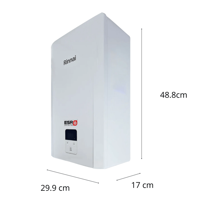 El calentador ESR8 combina tecnología Japonesa, moderna y seguridad. Tiene capacidad de 8 litros, ideal para 2 servicios simultáneos. Funciona con gas Lp y cuenta con sistema digital, sensor de ausencia de flama, bloqueo de gases y tecnología Energy Smart. Incluye 3 años de garantía del fabricante.